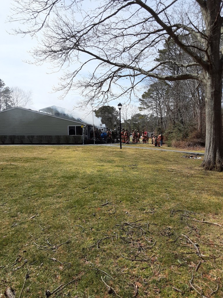The fire department was already on the scene. They busted out all the windows and cut a hole in the roof to vent the smoke. Me and the rest of the neighbours were watching the action, and we kept backing away from the scene because the wind was carrying the smoke in our direction. I was joined by my neighbours Maureen and Erica. Thankfully, the demons that are on the other side of my sitting room wall stayed out of my business and personal space. The firefighters then turned their attention to the attached storage space. All of the apartments have them. That seemed to be where the fire was located and is also where the circuit breaker can be found. The meter is attached on the outside. I was so afraid that PSE&G would cut power to the whole building. The front of the shed melted off, and the firemen were dragging out stuff and knocking down the fire. I didn’t see any actual flames because there was so much smoke. In a few minutes, the whole shed and half of the apartment exterior turned black from fire and smoke. The firefighters started removing all the junk from the patio and putting it in a pile on the walkway. They tore into what was left of the shed to eliminate any hotspots. My cool neighbours had somewhere to go, and I wished them luck because the parking lot was crowded with emergency vehicles.