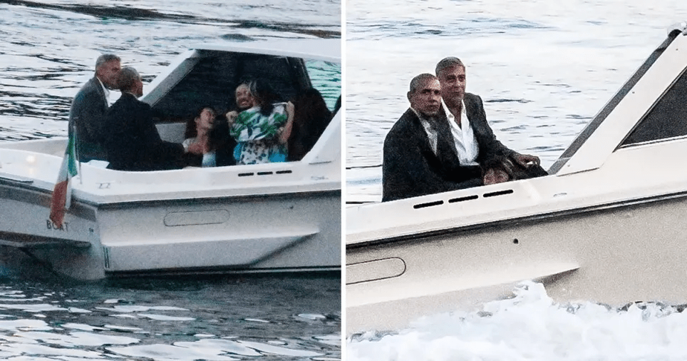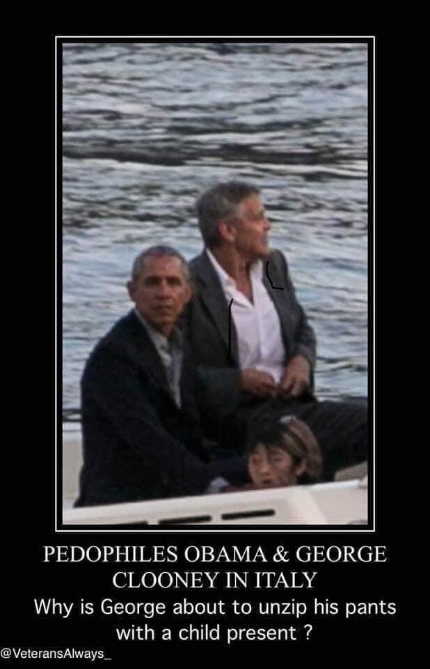 My Patriot friend and I were talking about the first pic. Why would there be an Asian girl at Obama’s feet next to Clooney? You can probably guess what she was doing; but then Clooney is seen unzipping his pants. All this was going on in front of Obama’s “wife” Michelle, and Clooney’s wife Amal, along with other adults on the boat. In the bottom pic, that looks like Amal going ashore, and next to her is Michelle.